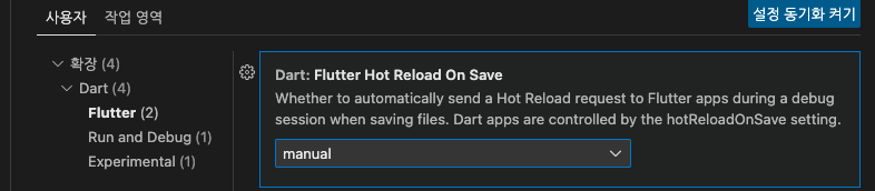 Flutter Hot Reload On Save : manual -> all 로 바꾸면 된다는 글을 보았고 바로 시도해보았다.